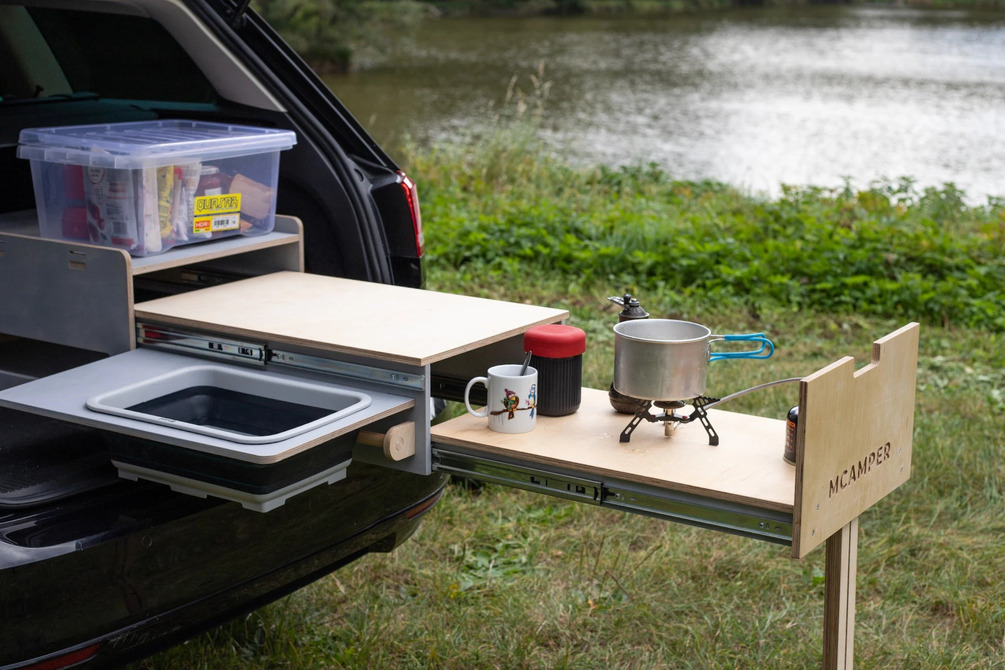Build your own compact camping kitchen drawer – perfect for SUVs, estates, MPVs, vans, and more.